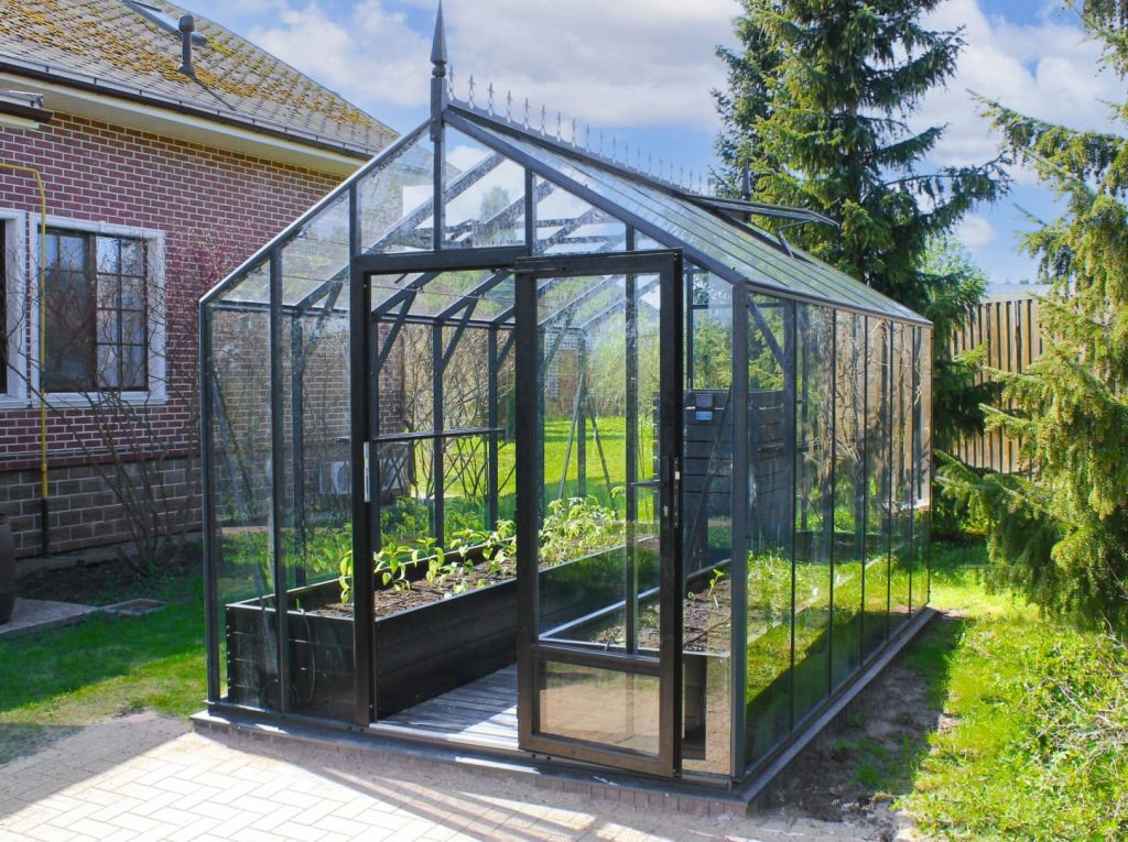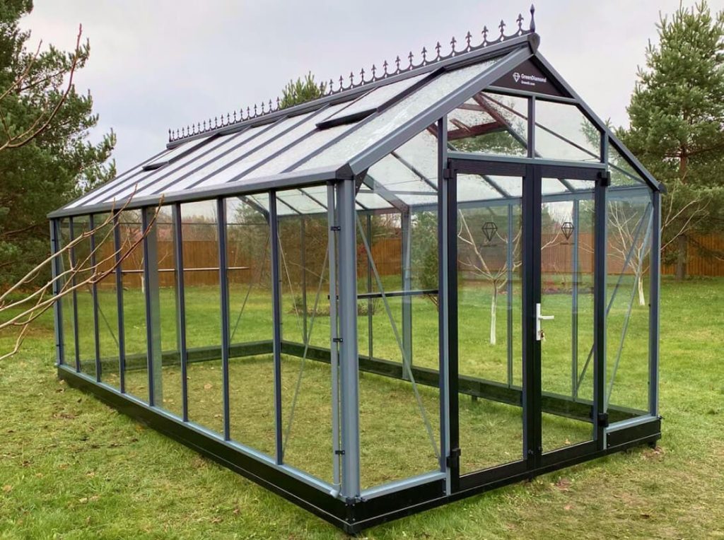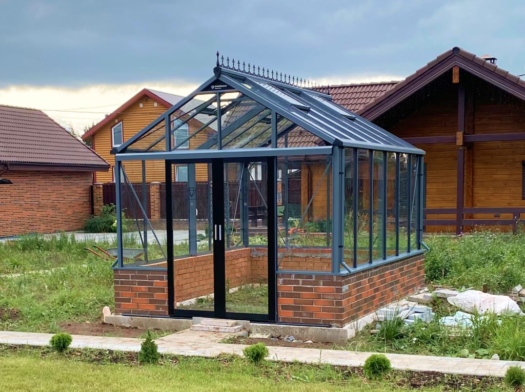 Базовая теплица с простыми формами алюминиевых профилей каркаса, и углом ската крыши 30°