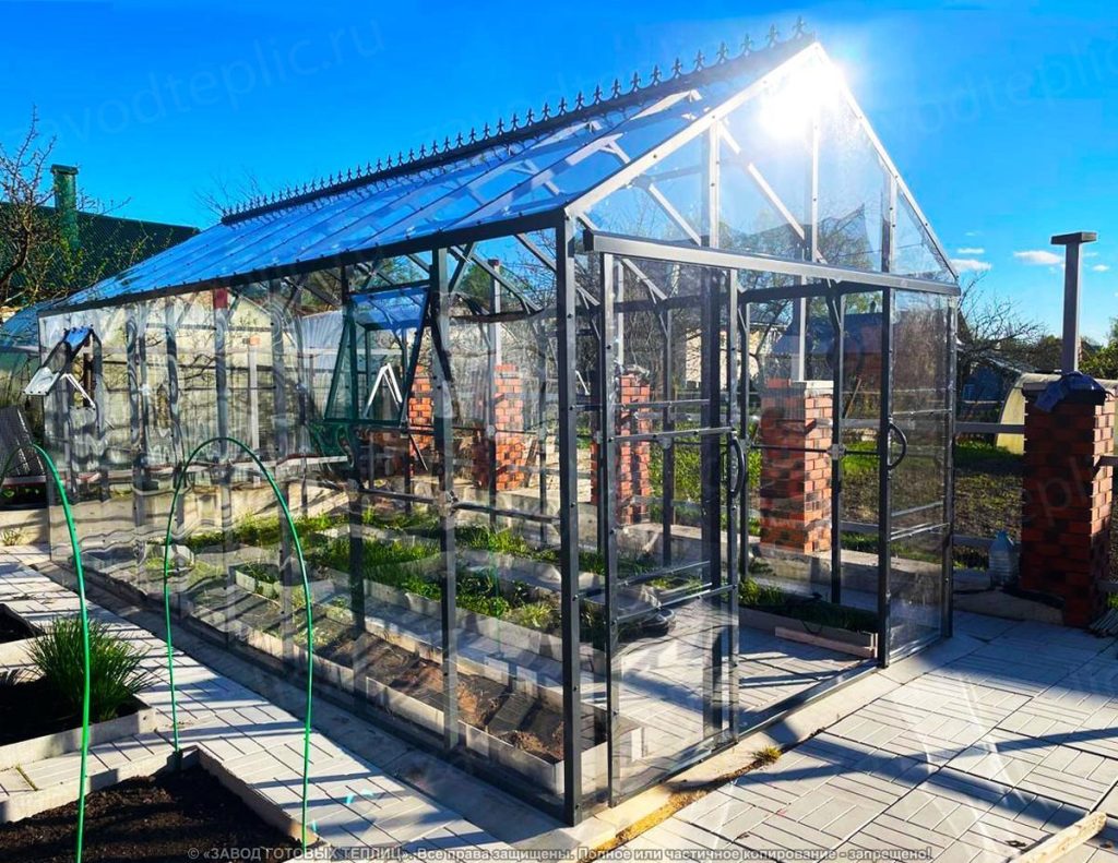 Декоративный конек придает теплице более стильный внешний вид. Он выполнен в Викторианском стиле, является оригинальным дополнением двускатной конструкции крыши теплицы.